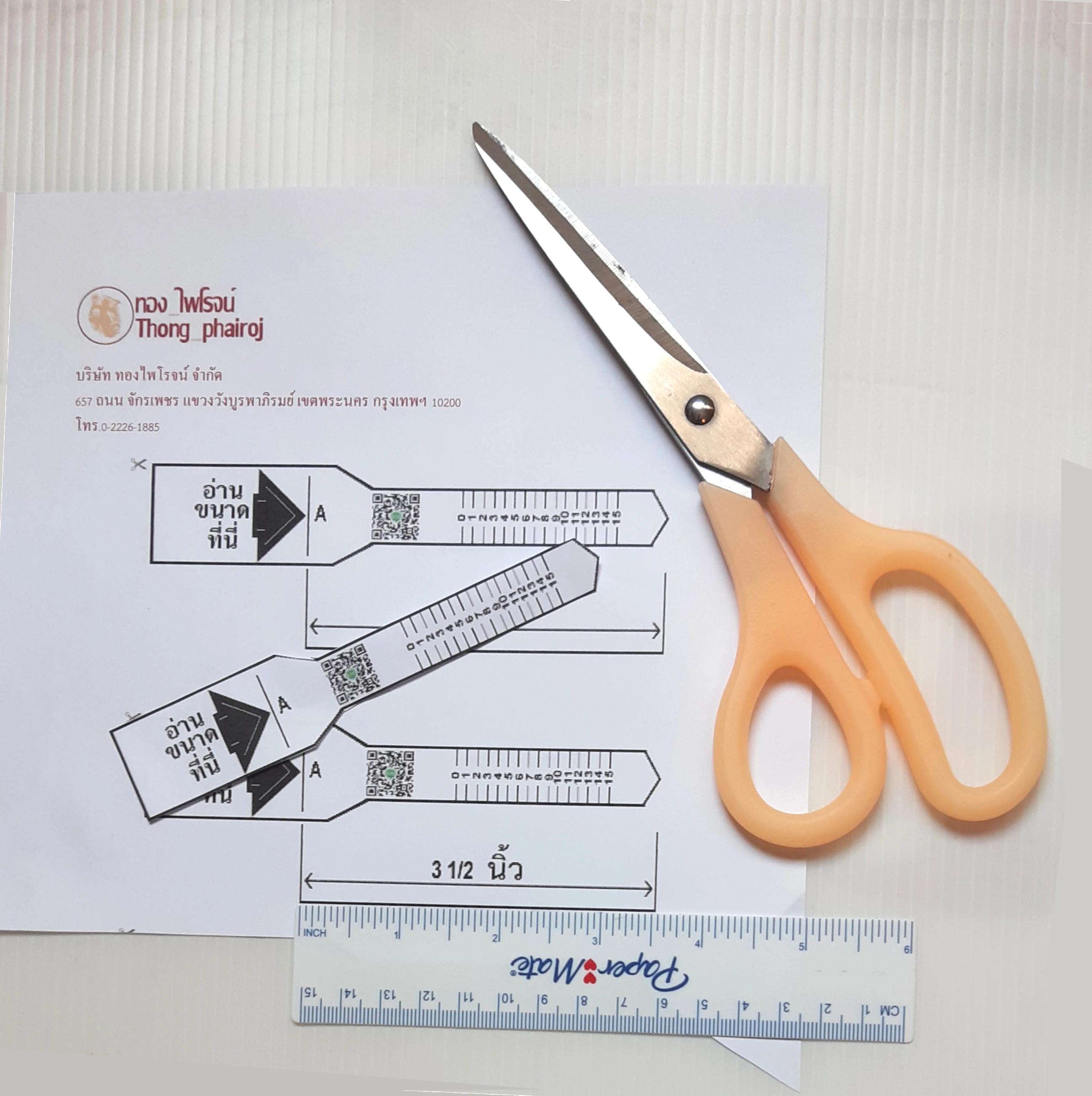 5. ใช้ไม้บรรทัดตรวจสอบยืนยันว่าขนาดว่าใช่3นิ้วครึ่งก่อนทำการตัดเอกสารดังกล่าว (ตามภาพที่2)